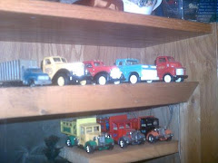 In my basement I have created, what I call the "Car Corner". I have collected many things over the years that have to do with cars and trucks. Many of these things are in the Car Corner. But this is also a place that I can highlight my model collection. I owned a hobby shop that I ran from 1995 untill 1999. So I got many models while I had the store.
